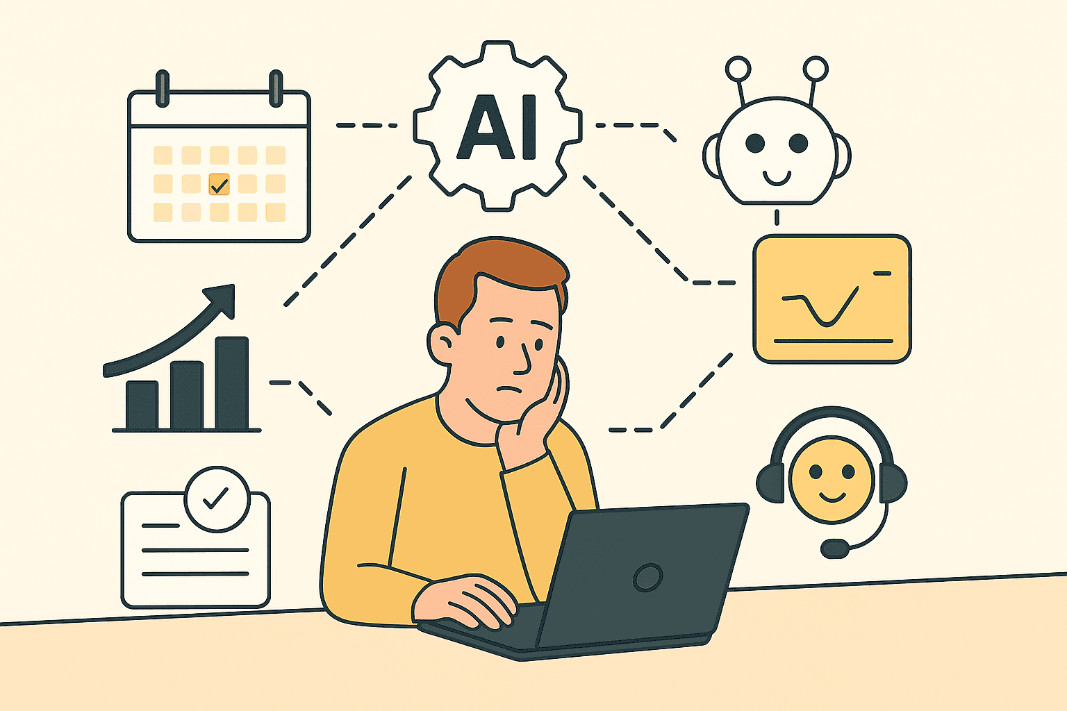 Vi starter småt – én proces ad gangen. Med værktøjer som Make, Zapier eller Power Automate koblet med AI kan vi spare tid på gentagne opgaver og skabe hurtige gevinster.